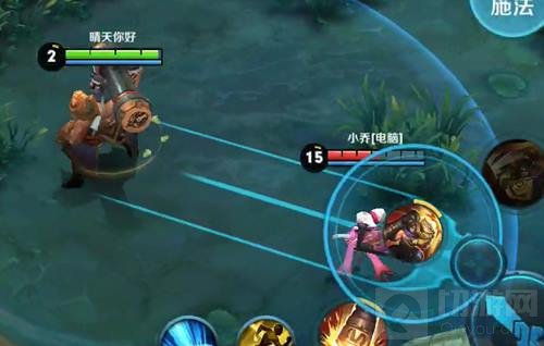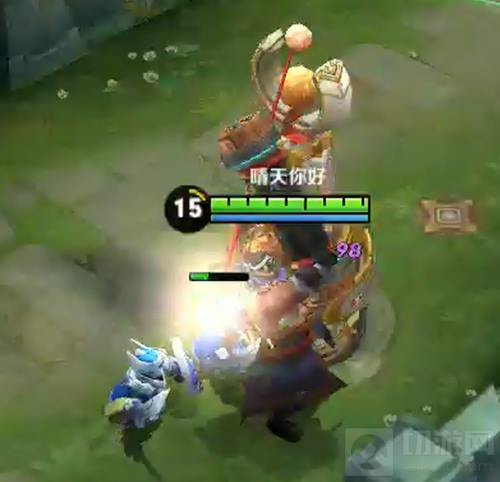 2.一技能可以在草丛中空A前两下,然后等技能CD完毕后,再朝敌人打出第三下来击飞敌人,这样的话,又可以立刻进行下一轮的一技能释放了;