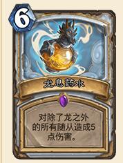 其中,龙息药水是一张很好的AOE牌,在没有了炸弹之后,这张是一个很强力的AOE,并且因为自身是龙牧,所以可以很好的使自己随从不受到伤害。