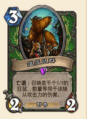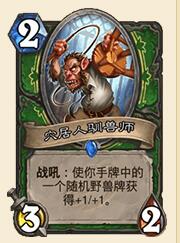穴居人驯兽师+瘟疫鼠群是这套卡组里的核心卡牌。另外,卡组里我用了驼运科多兽和豺狼人土枪手,目前还不清楚在新的环境下这两张牌够不够稳,新天梯还有待观察。