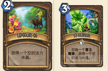 继野性成长和豹骑士后,德鲁伊又有了新的攀科技姿势,再加上这套牌以青玉魔像为主,所以青玉绽放在这套牌中显得十分有用。但要注意,在10费的时候使用青玉绽放似乎不会给你过剩的法力水晶,不过魔像还是有的。