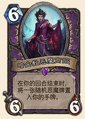 融入了新的几张恶魔体系,恶魔商贩和卡扎库斯都可以去找到更多的恶魔,然后末日灾祸似乎也可以去买个梦想了,如果是非洲人的话可以考虑带个6费邪火药水或者扭曲虚空。