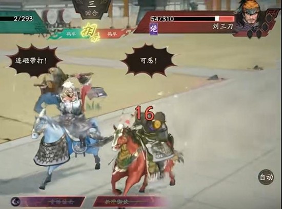 刘三刀的特点是爆发力强、攻击速度快、单点伤害高,如果正面硬碰硬很容易导致核心角色被秒。他在战斗中会频繁使用多段连斩和强化技能,一旦被连续命中就很容易造成队伍崩溃。因此玩家需要充分利用车轮战的轮换优势,通过不同武将轮流承担伤害来维持整体阵容的稳定性。