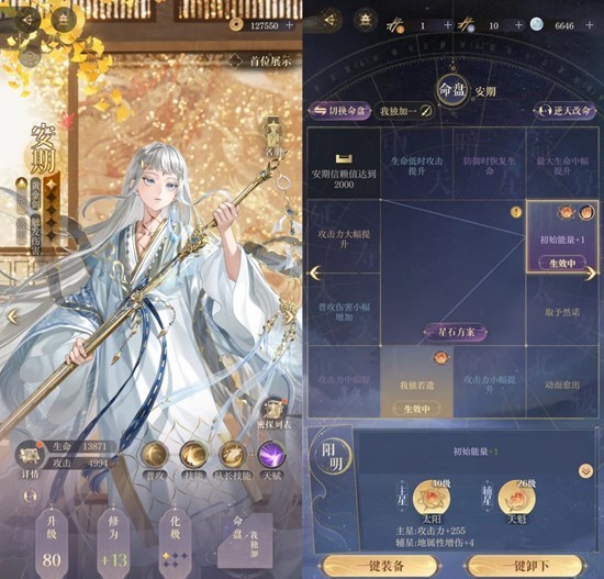 星石:谨+安期堆攻击,蛋+董奉+孔融全部堆生命。漆园蝶随缘,缺攻击加攻击,缺生命加生命,哪里不足点哪里。