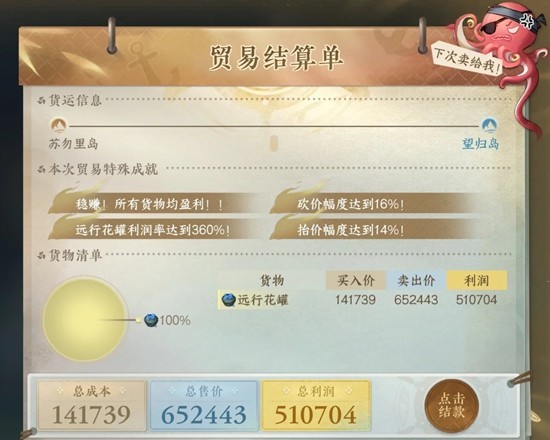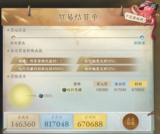 以上就是逆水寒航海贸易大优化,本周航海线路三连一趟完成攻略的全部内容了,更多游戏资讯,攻略内容敬请关注,您的支持是我们努力的动力!