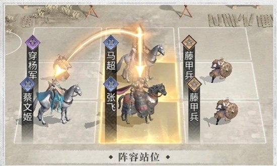 若尚未获得张飞,也可用孙策或庞统作为替代。孙策具备战场威慑类技能,能压制敌方行动,稳定战局;庞统则擅长策略控制,可通过技能干扰敌方关键单位。这两种搭配均能为马超提供良好的输出环境。技能选择方面,马超应优先装配追击类武力技能,最大化两次追击的伤害输出;蔡文姬携带治疗与增益技能维持队伍续航;前排武将则侧重控制与防御类技能,增强生存能力。